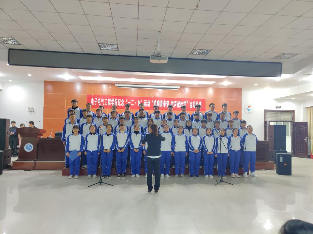 继初赛、复赛之后,有7个班级成功进入决赛,参赛的班级用《打靶归来》、《我和我的祖国》、《没有共产党就没有新中国》、《走向复兴》等一系列红色歌曲,表达了对祖国的热爱之情以及坚决跟党走的决心和信心。他们用嘹亮的歌声、激情的红色诗歌朗诵以及充满爱国情怀的舞蹈展现出电气学子良好的精神面貌。最后,19级机器人2班以歌曲《走向复兴》获得本次合唱比赛第一名。