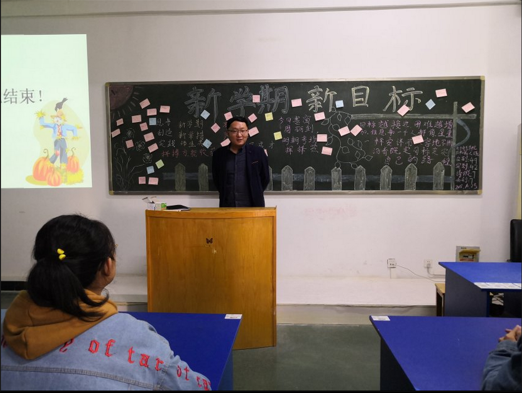 班会开场,由一首歌曲引入今天的主题,接着主持人对“新学期,新目标”的主题含义作具体阐释,同学们很快进入了主题班会的状态。随后,班里几位同学通过演讲、诗歌朗诵等形式抒发了自己对新学期的展望。主持人对于新目标树立的长远性和可实现性提出若干问题引发大家思考,经过认真思考和小组讨论,同学们纷纷发表个人见解,并对他人提出的观点进行分析和解读。最后,全体学生在事先准备的卡片上写下了自己新学期的“新目标”。班会结束后,边疆书记做出点评,发表了自己的观点和看法,鼓励同学们科学树立目标,在学习和生活中找到正确方向,实现自己的价值,并对各位学生寄予期望。