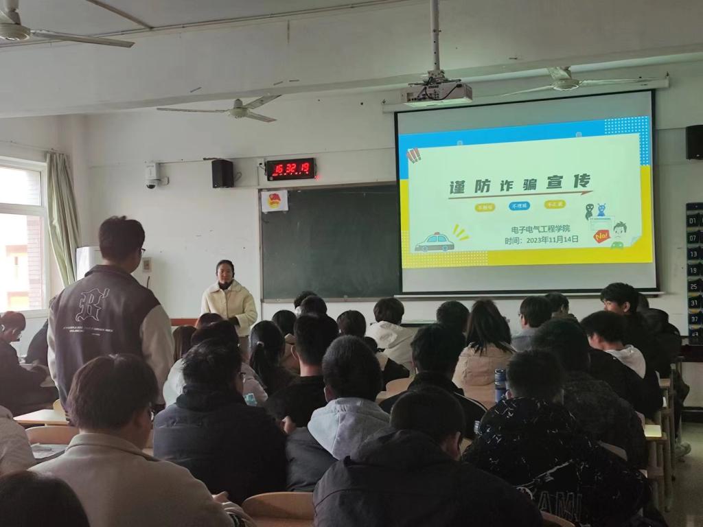 电子电气工程学院召开党政联席会,部署防诈反诈工作安排,要求以线上线下相结合的方式开展活动,强调把工作成效落在实处。组织全院老师率先学习电信诈骗相关知识,带头安装注册“国家反诈中心”APP,并号召全体同学安装注册并开启预警,建立手机端防御战线。辅导员老师召开电信诈骗主题班会,通过诈骗案例筑牢学生思想防御战线。通过学院公众号和板报普及“灵魂8问”、“六个一律”、“十个凡是”等重要内容,筑牢宣传教育阵地。