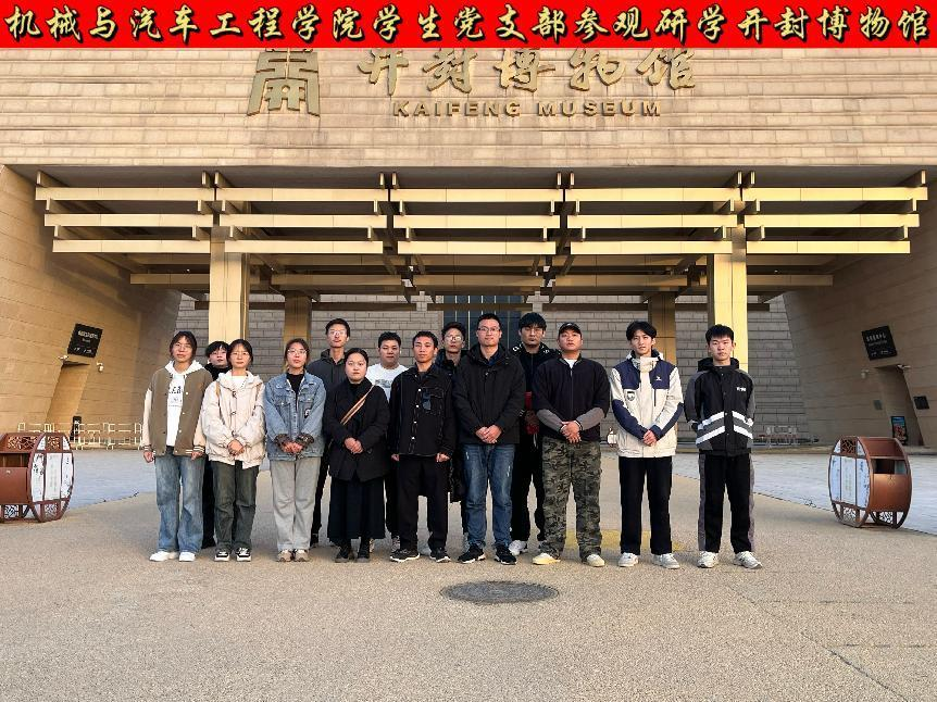 2023年12月6日下午,机械与汽车工程学院学生党支部师生一行20余人走进开封市博物馆参观研学活动,旨在历史长河中了解和学习传统文化文化,感受开封历史积淀。