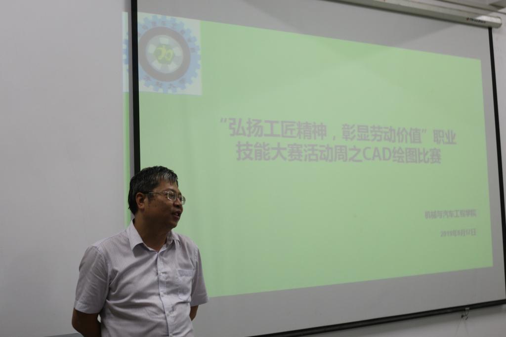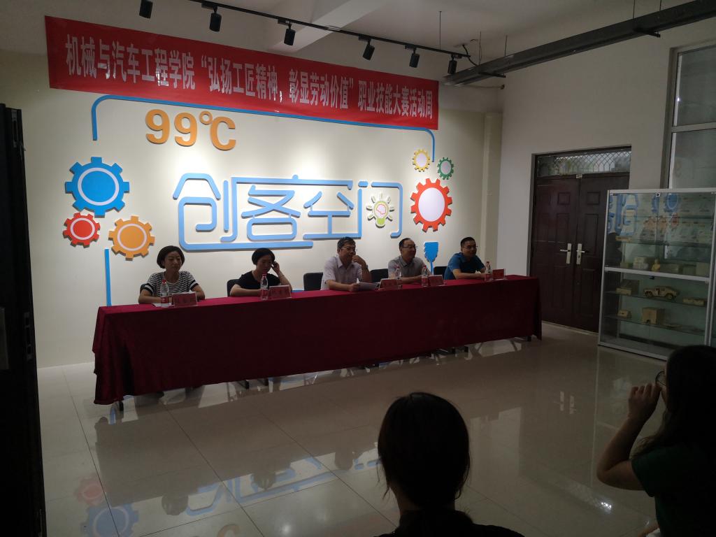 为弘扬工匠精神和劳模精神,让学生在专业实践中提升技能水平、体验劳动真谛,6月17日,机械与汽车工程学院举办“弘扬工匠精神,彰显劳动价值”职业技能大赛活动周启动仪式,学院院长朱跃峰、党总支副书记闫金红、副院长林吉靓、创新创业学院副院长许海军、教师代表吕拓以及机械与汽车工程学院部分师生参加了启动仪式。仪式由机械与汽车工程学院党总支副书记闫金红主持。
