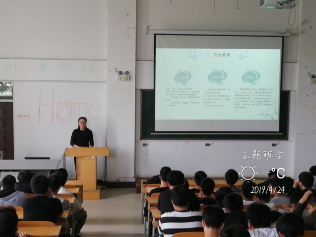 4月24日,2018级辅导员李金老师在17#楼116教室、208教室召开安全教育主题班会,2018级全体学生参加了本次班会。会上,李老师着重从人身财产安全、交通安全、假期兼职安全、生产实习安全等方面,向同学们强调了需要注意的问题,又通过典型案例提醒同学们增强警惕意识和自我保护能力,掌握必备的安全防范技能。并以2017级学生生产实习中出现的安全问题为例,强调安全无小事,要求大家今后参加生产实习时,要严格遵守企业规章制度,保证设备安全,谨慎操作,虚心学习,杜绝安全事故发生。