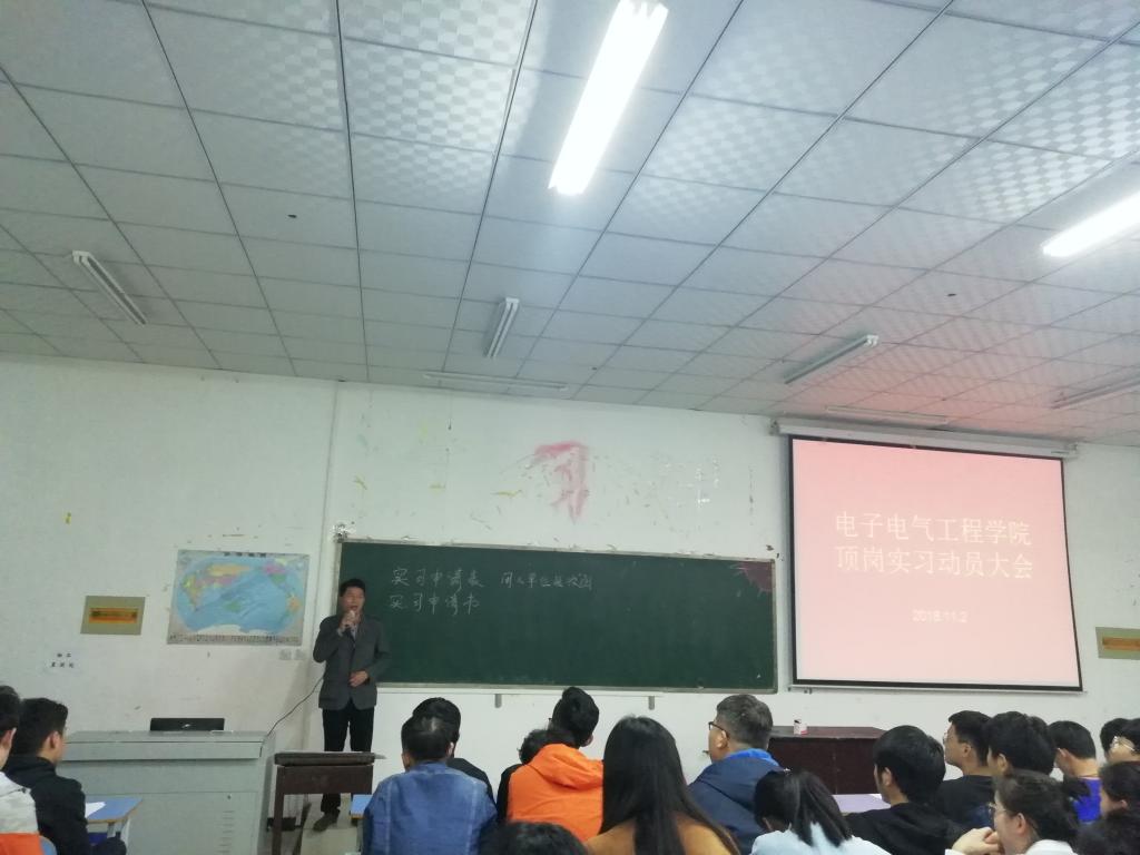 2018年11月2日13:30分,电子电气工程学院在15号楼135教室举办了毕业生顶岗实习动员大会,本次大会由大三辅导员朱朝旭老师主持,16级全体学生参加。学院党总支书记徐纪珂、党总支副书记边疆莅临本次大会。