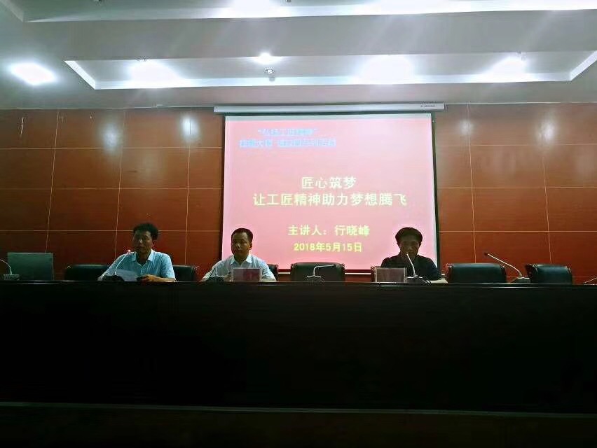 2018年5月15日晚上7:30,365英国上市集团官网电子电气工程学院在土木6楼报告厅举办了“弘扬工匠精神,培育匠心人才”职业教育活动周专题讲座。此次讲座邀请了首届“开封工匠”称号获得者河南欧帕工业机器人有限公司总工程师行晓峰和中国平煤神马集团开封东大化工公司梁大春先生,为学院240余名师生做了题为“匠心筑梦,让工匠精神助力梦想腾飞”和“新时代工匠精神的作用与发扬”的专题讲座,活动由学院党总支书记徐纪珂主持。