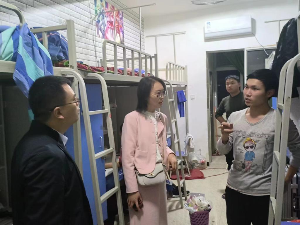 班会结束之后,两位辅导员到11号宿舍楼查看学生内务整理情况,询问学生开学准备情况,与学生亲切交谈,告诉学生要调整状态,以饱满的情绪投入到新学期的学习和生活。