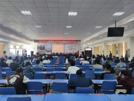 为了加强实习管理,让2020级学生认识到实习的重要性,明确实习方向与实习要求,2022年4月20日,电子电气工程学院在土木学院六楼报告厅召开了20级岗位实习动员大会。学院党总支书记李鹏、院长杜诗超、各教研室主任和全体辅导员、实习指导老师出席,会议由李鹏主持。
