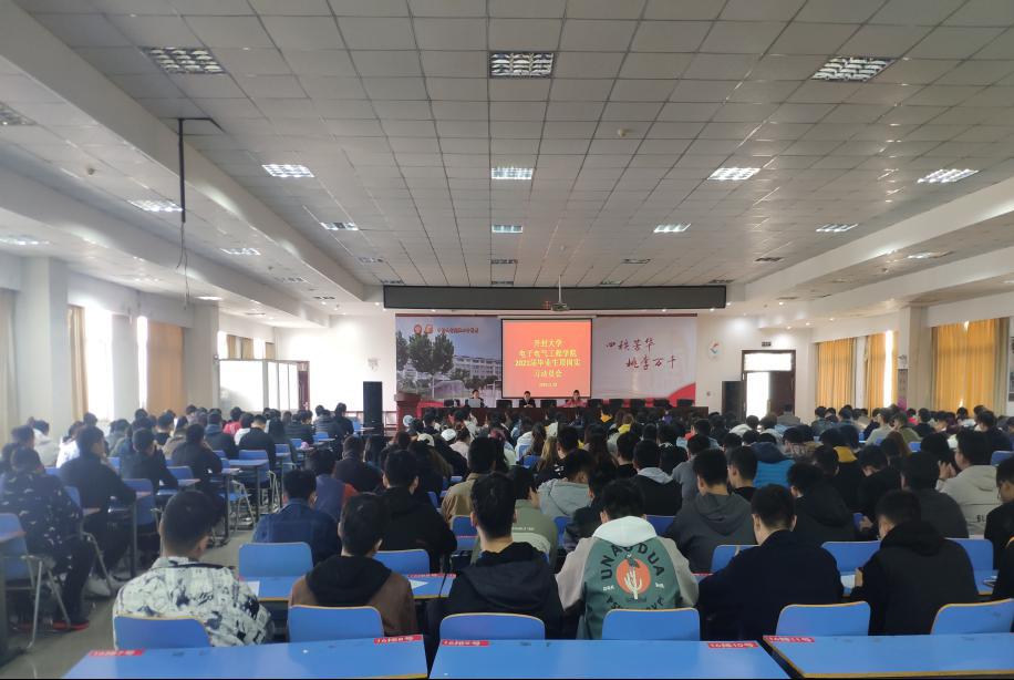 为规范实习制度,保障毕业生顶岗实习工作顺利进行,电子电气工程学院于11月18日下午3点在土木学院6楼报告厅举行2021届毕业生顶岗实习动员会。学院党支部副书记杨辉、副院长边疆以及团总支负责人、18级辅导员李俊葳老师出席了本次会议。