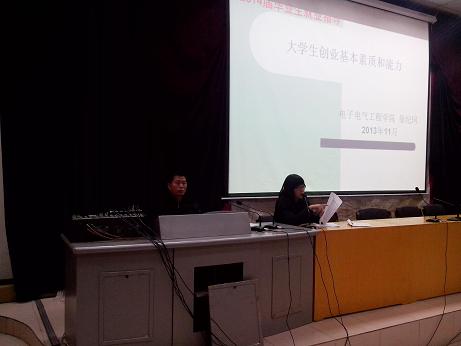 2013年11月1日中午12:30分,电子电气工程学院在报告厅举行2014届毕业生就业指导专题教育,参会领导有院党总支副书记和辅导员。
