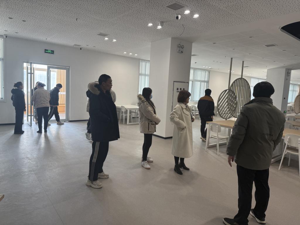 2025年1月10日下午,校纪委联合国有资产管理处、校园建设管理处及图书馆相关负责人对该项目进行验收。施工方对吊顶、地胶等基础装修进行了汇报,设计师对装修总体落地效果进行了评估,图书馆负责人对近期试运营效果进行了反馈。
