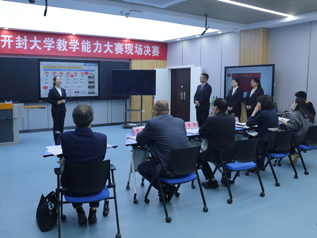 本次教师教学能力比赛分为网络初评和现场决赛两个阶段,经过校内外专家网络初评后有12支团队的43名选手进入现场决赛。决赛环节对标河南省高等职业院校教育教学能力大赛,模拟省赛现场决赛流程、落实省赛最新要求。学校邀请全国著名职业教育专家和国家级、省级职业院校教育教学能力大赛评委担任专家评委。决赛现场,各参赛团队按抽签顺序进行了教学实施报告介绍、无学生教学展示和现场答辩。