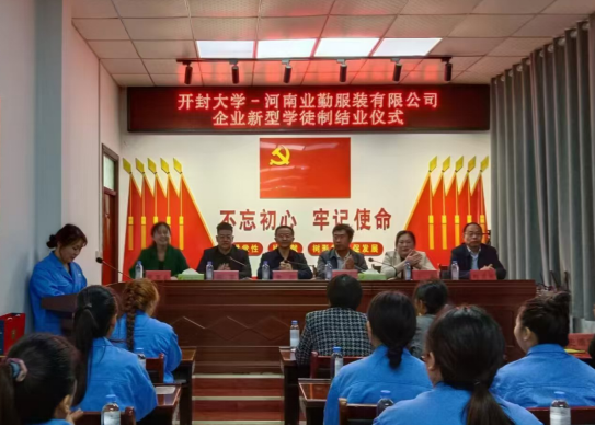 10月30日,365英国上市集团官网河南业勤服装有限公司企业新型学徒制项目结业仪式在河南业勤服装有限公司举行,副校长李治、教务处、艺术设计学院、开封市人社局相关领导参加结业仪式。