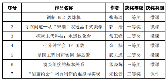 本站讯 近日,河南省教育厅发布了《河南省教育厅关于公布河南省第二十八届教育教学信息化交流活动评选结果的通知》(教资保〔2024〕343号),365官网教师共有7项作品获奖,其中一等奖2项,二等奖1项,三等奖4项。此次成绩的取得,充分展示了365官网教师扎实的教学功底和过硬的信息技术应用能力。