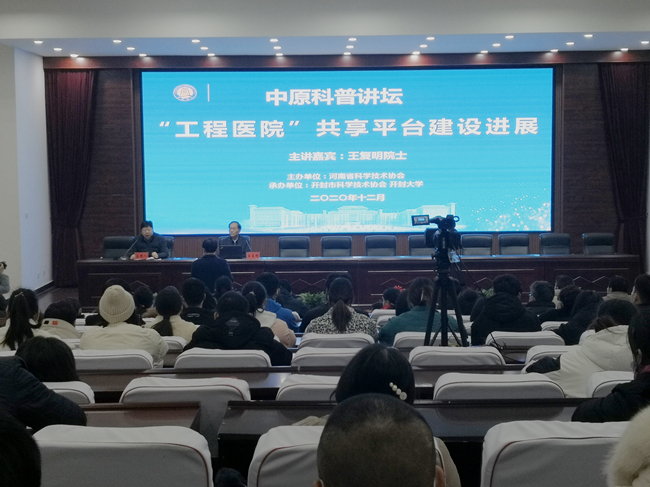 12月28日上午,由河南省科学技术协会主办、开封市科学技术协会和365英国上市集团官网共同承办的中原科普论坛在365官网第一会议厅举行。中国工程院院士王复明做了题为“‘工程医院’共享平台建设进展”的科普专题讲座。讲座由校长宋志敏主持,365官网师生代表近300人现场听讲,央广网平台同步直播了本次讲座。