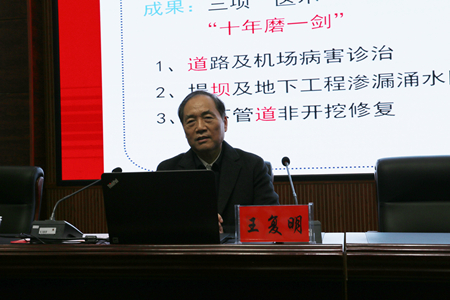 王院士长期从事基础工程设施安全维护理论与技术研究,在基础工程渗漏涌水防治和隐蔽病害诊治方面取得了巨大的创新成果。他首先分享了自己“治水梦的起源”,讲述了自己从追逐梦想到抓住机遇“十年磨一剑”苦读水利十年,再到毕业后不畏各种险阻毅然回国从事道路无损检测与病害诊断研究的人生奋斗历程;深入浅出地讲解了他带领团队在促进多学科融合、致力于产学研协同发展和在固坝修道的实践中取得的三大成果。最后他分享了“工程医院”的使命及其建设进展情况,介绍了“工程医院”在不同地区原位试验设施建设情况。王院士深情地讲到“工程医院”不仅是民生大事也关系到国家大计,他希望“工程医院”可以汇聚相关高校、院所及企业单位,足尺试验设施和先进特色仪器设备,搭建“场网一体”“科教融合”共享平台,为全国青少年构建解决专业问题、追逐梦想的平台。