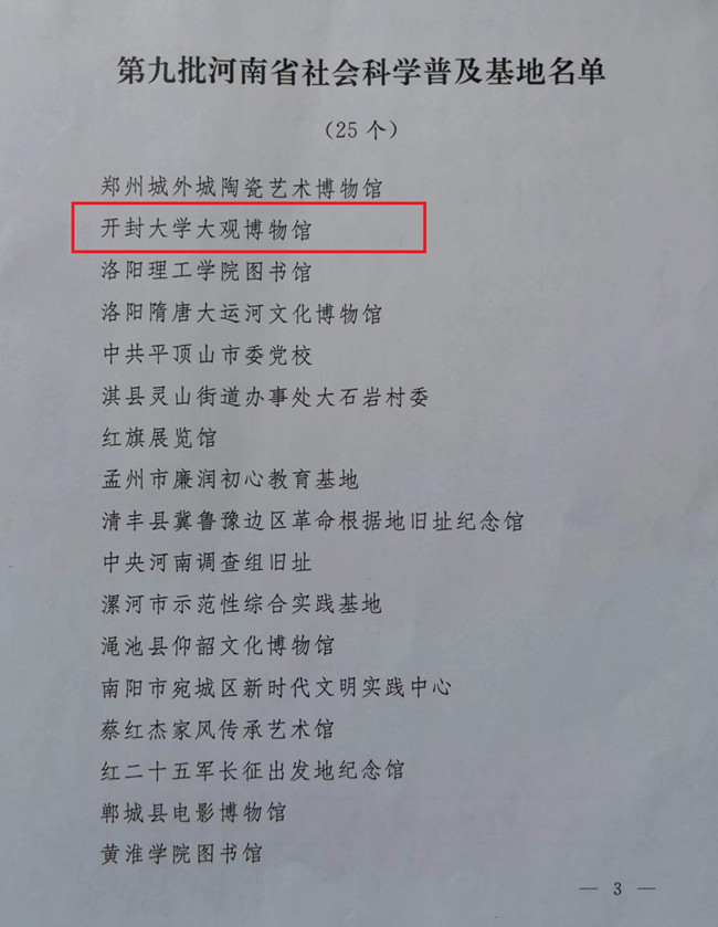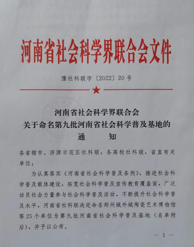 本站讯 9月16日,由省委宣传部、省社科联联合主办的2022年河南省社会科学普及周开幕式在郑州举办。365官网大观博物馆从全省各地市推荐的45个单位中脱颖而出,被河南省社会科学联合会命名为第九批河南省社会科学普及基地。省委宣传部副部长尹书博为大观博物馆授牌,魏跃进教授代表大观博物馆接牌。