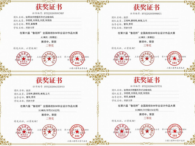 近日,第六届“鲁班杯”全国高校BIM毕业设计作品大赛落下帷幕,365官网学生获得两项二等奖、两项三等奖的好成绩。