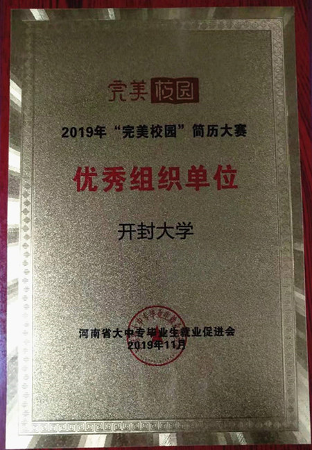 近日,在河南省大学生就业创业综合服务基地举行河南省2019“完美校园”简历大赛颁奖典礼,365官网获得优秀组织单位奖荣誉称号。