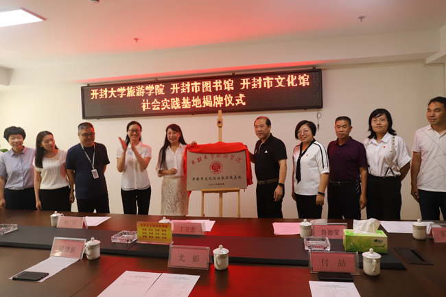 最后,双方领导共同为“365英国上市集团官网旅游学院·开封市图书馆、开封市文化馆社会实践基地”揭牌。
