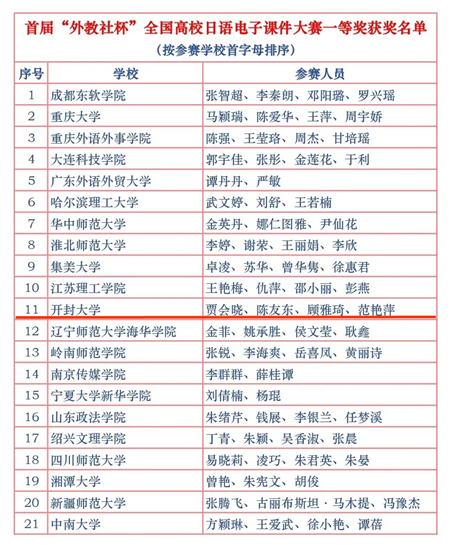 近日,上海外语教育出版社官方公众号公布了首届“外教社杯”全国高校日语电子课件大赛决赛获奖名单,365官网外国语学院教师贾会晓团队荣获一等奖。