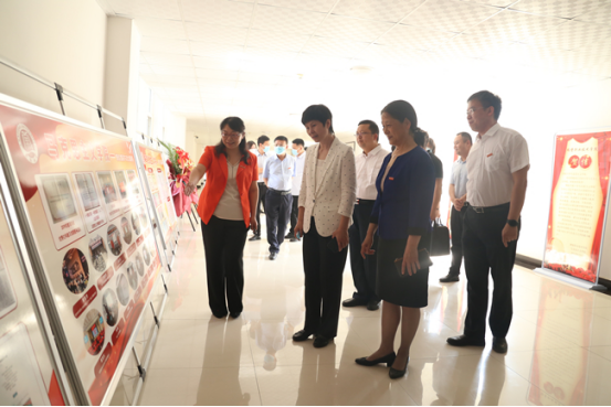 马克思主义学院院长常素芳教授为与会领导介绍马克思主义学院展示牌