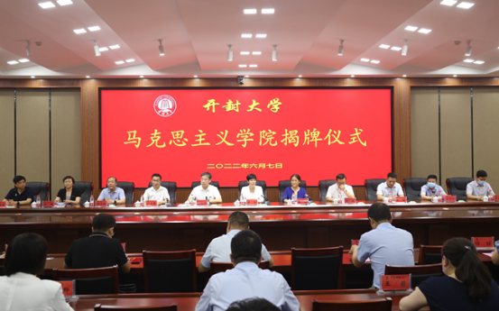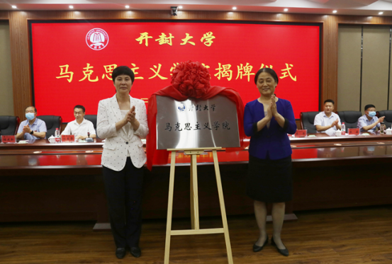 开封市委常委、市委宣传部部长邵华和校党委书记陈灿共同为马克思主义学院揭牌