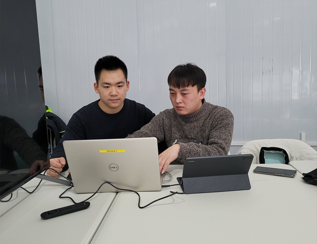 张浩与同事在保障工作中