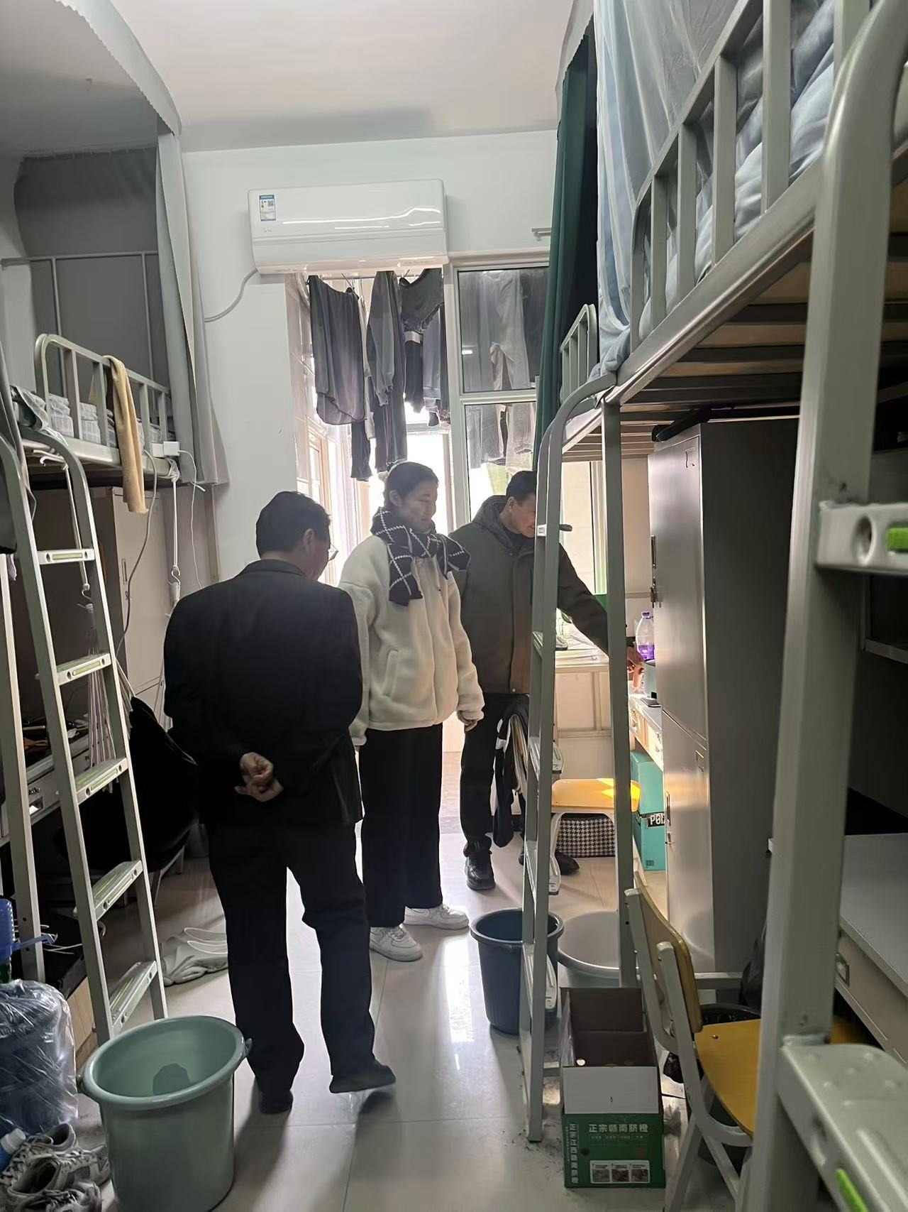 12月17日上午,学院党总支书记梁波、副书记王振鹏带领全体辅导员深入学生宿舍进行了全面细致的安全大排查。聚焦宿舍用电安全、消防安全以及环境卫生等方面,对每间宿舍的电器设备使用情况进行了认真查看,严禁私拉乱接电线、违规使用大功率电器等行为,确保电气线路安全无虞。同时,对宿舍卫生状况提出了要求,督促学生保持良好的居住环境,预防疾病传播。