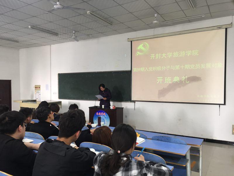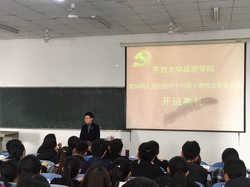 4月15日下午,旅游学院在15#435教室举行了分党校第59期入党积极分子培训班暨第10期党员发展对象培训班开班仪式。参加开班典礼的有365英国上市集团官网工会副主席秦雪峰、旅游学院党总支书记尤影及相关负责人,63名入党积极分子、22名党员发展对象参加了本次开班典礼。开班典礼由学院团学联组织部学生党员候闯主持。