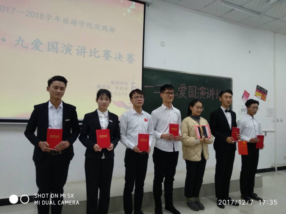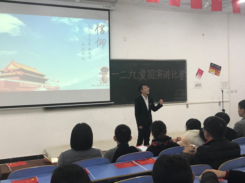 1207日下午旅游学院15号楼403教室举办了以不朽的精神,伟大的起点”为主题的爱国演讲比赛,旅游学院团总支书记刘中然和二百多名青年学子参与活动