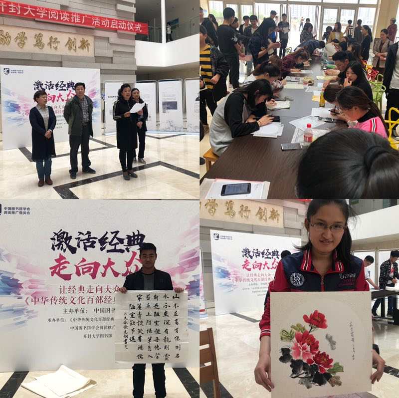 为了纪念“世界图书日”,365英国上市集团官网图书馆于2019年4月18日举办了一场以“激活经典、走向大众”为主题的书画大赛活动,旅游学院团学联学习部承接了此次活动。为了传承中国经典文化,激发同学们对诗词和书画的喜爱,学习部遵循活动主题,以“书香校园、回忆经典”命名,组织学院三十多名同学于18日下午准时到达校图书馆参加活动。