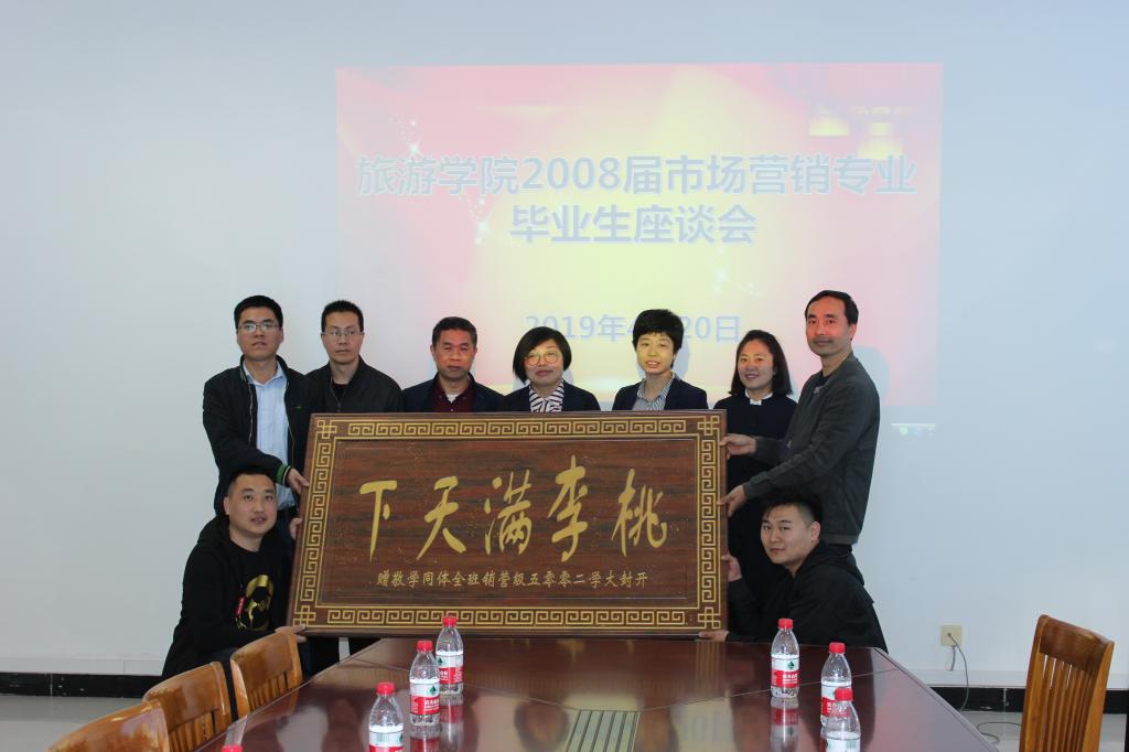 2019年4月20日上午,旅游学院2008届市场营销专业二十余名毕业生回母校相聚,感恩母校敦敦教诲之情,分享毕业十多年的成长历程,重温青春岁月,再叙师生情谊,祝福母校蓬勃发展。旅游学院领导和部分任课老师参与了此次活动。