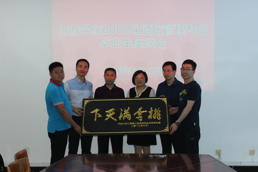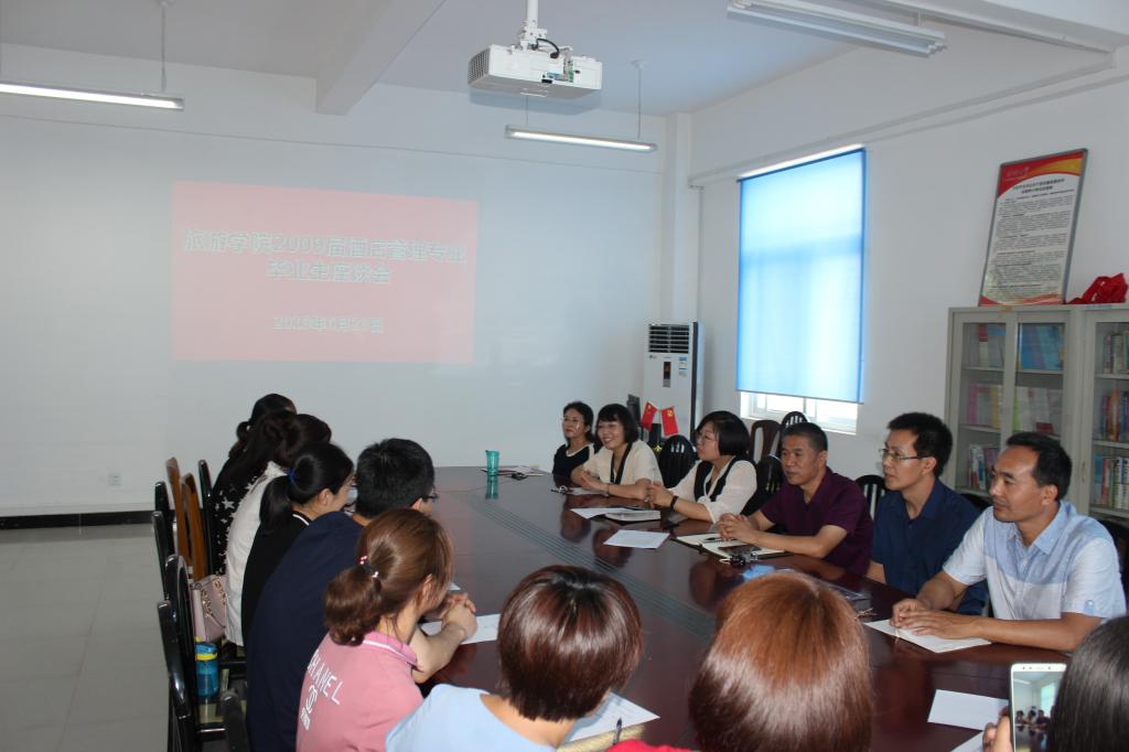2019年6月23日上午,旅游学院2009届酒店管理专业三十余名毕业生回母校相聚,感恩母校敦敦教诲之情,分享毕业十年的成长历程。旅游学院领导和部分任课老师参与了此次活动。座谈会在旅游学院会议室举行。