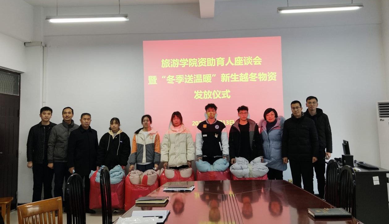 为把党和国家对家庭经济困难学生的关怀落实落细,确保家庭经济困难学生温暖过冬,12月13日下午,旅游学院在院二楼会议室开展“资助育人”座谈会暨“冬季送温暖”新生越冬物资发放仪式。学院党总支书记尤影,院长丁永琦,副院长郭军明、王振鹏等教师和受助学生代表参加了本次仪式。