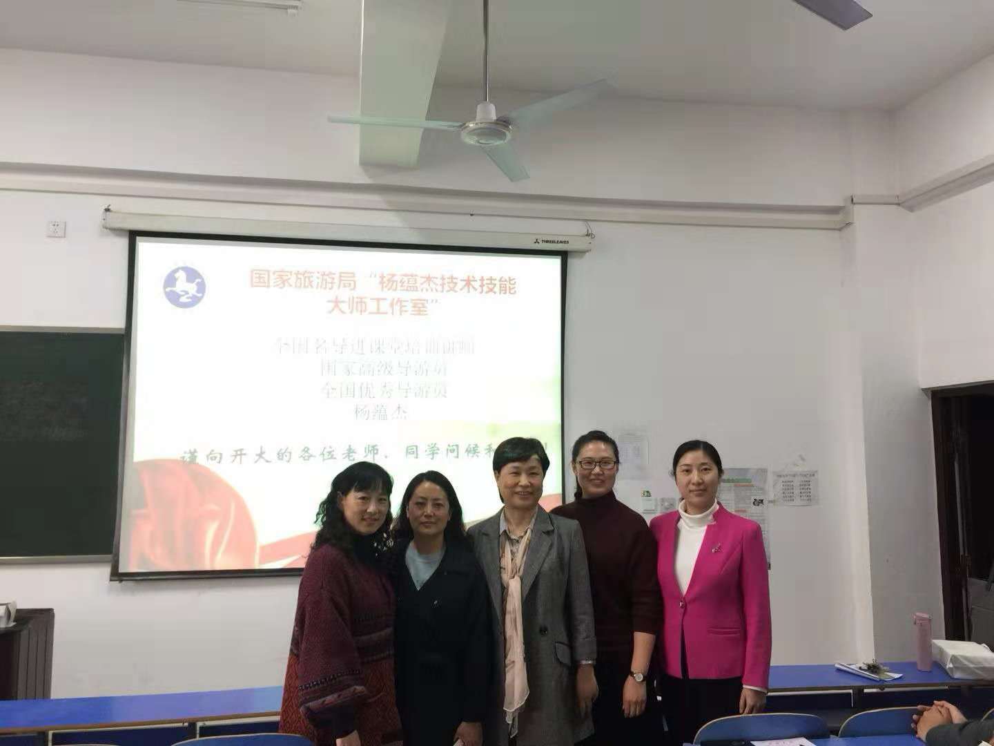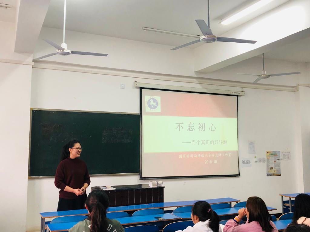10月25日下午,旅游学院与开封市旅游委在教学楼429教室联合举办了“名师名导进校园”活动,此次活动邀请了国家旅游局导游技术技能大师杨蕴杰分享了题为“不忘初心——当个真正的好导游”的讲座,旅游学院部分师生聆听了讲座,讲座由旅游学院党政办公室主任李惠主持。