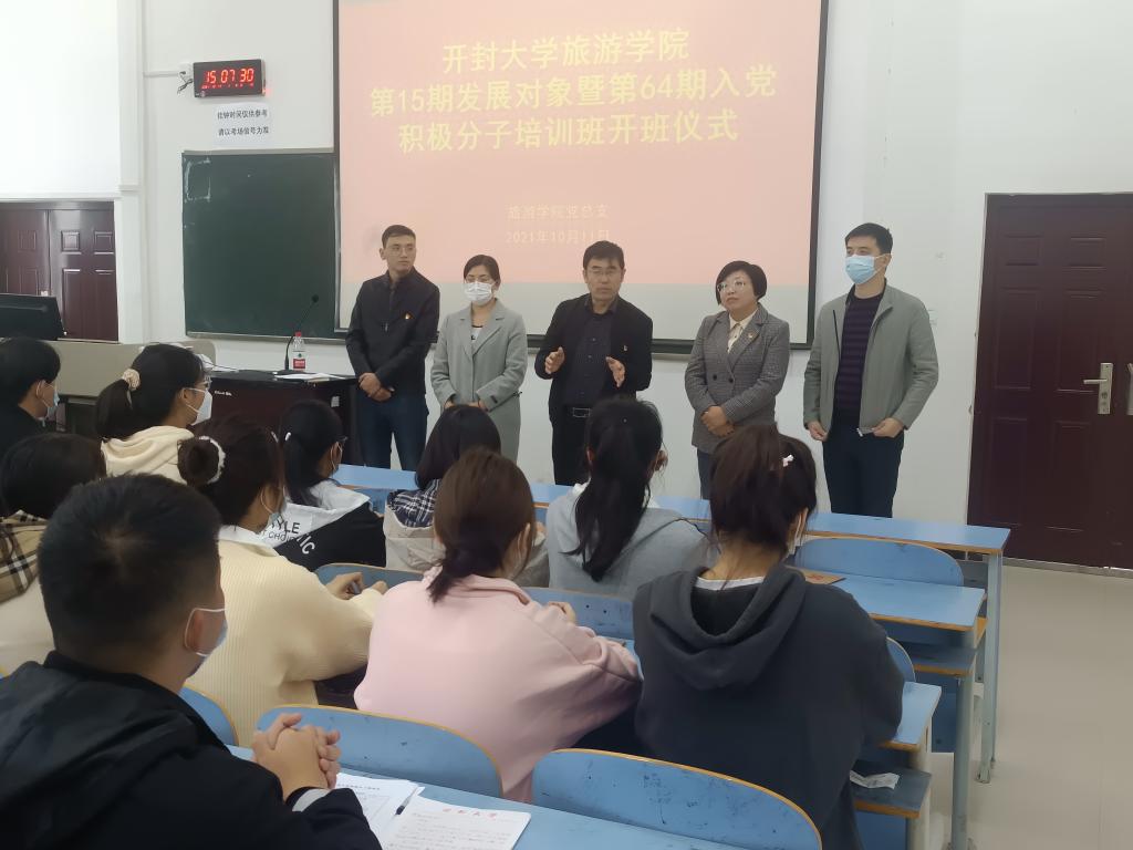 10月11日下午,旅游学院在15号楼420教室举行了第64期入党积极分子暨第15期发展对象开班仪式。参加开班仪式的有校组织统战部部长赵海胜,旅游学院党总支书记尤影,团总支书记姚文亮,辅导员陈加龙、白栩及全体81名学员。仪式由陈加龙同志主持。