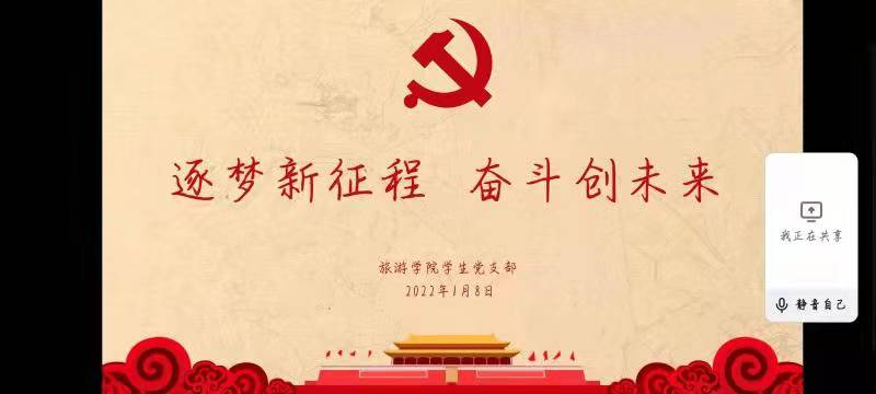 2022年1月8日,旅游学院学生党支部通过线上和线下相结合,开展了以“逐梦新征程 奋斗创未来”为主题的党日活动。活动由陈加龙老师主持,全体学生党员参加。
