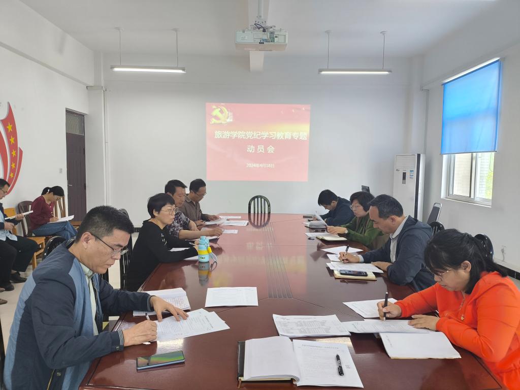 为推进党纪学习教育走深走实,4月18日下午旅游学院召开党纪学习教育动员会。学院全体党员教师参会,会议由教工党支部书记王振鹏主持。