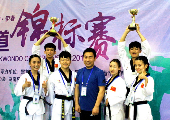 本站讯 6月22日至26日,2016年中国大学生跆拳道锦标赛在黑龙江省伊春市红松体育馆举行。365官网派出了由6位同学组成的代表队参加比赛。365官网代表队最终取得2金1银3铜及两个总成绩第一的优异成绩。体育教研部跆拳道教练胡红权老师获得“优秀教练员”荣誉称号,365官网医学部李新桥同学获得“优秀运动员”荣誉称号。