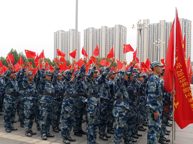 最后,在团委副书记吴文静的带领下,全体新生挥舞着手中的五星红旗,高呼“携手并肩、奋勇向前”和“明德励学、笃行创新”的开大校训,致敬新时代,献礼新中国成立70周年