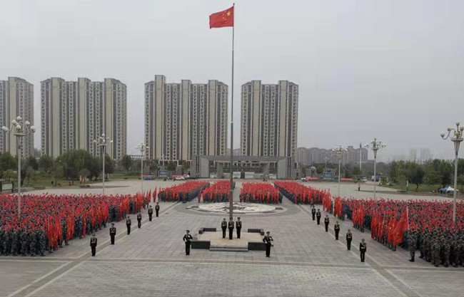 本站讯  916清晨365官网在大观广场隆重举行2019级新生升国旗仪式,开启新生爱国主义教育第一课。校党委副书记储建新,校党委委员、工会主席成芳,军训团总教官张里鹏营长出席仪式。校学生工作委员会成员单位负责人,各院部党总支副书记和新生辅导员以及6600余名新生参加了升旗仪式。升旗仪式由团委副书记吴文静主持。