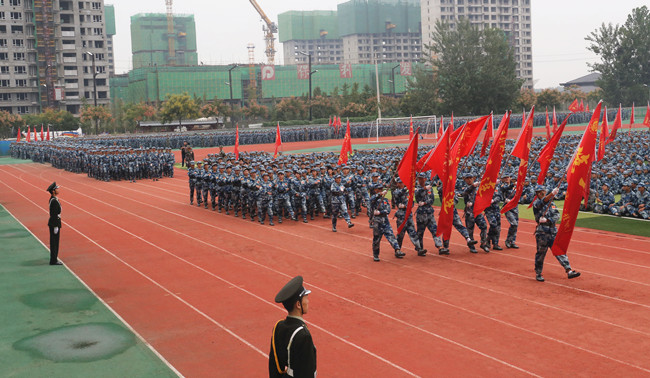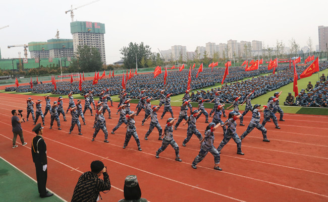 在雄壮的国歌声中之后,校长宋志敏检阅了2019级新生军训团各连队。