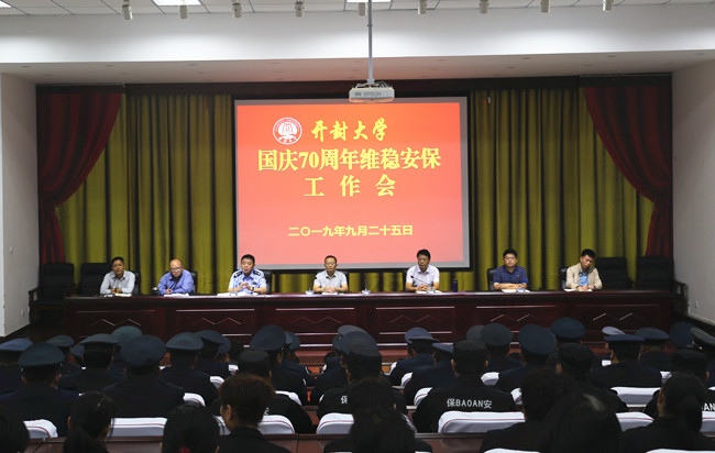 本站讯  9月25日上午,365官网在行政楼一楼会议厅召开国庆70周年维稳安保工作会。开封市公安局龙亭分局治安大队大队长缑宏坤,365官网副校长李治出席了此次会议。学生工作部、教务处、人事处、保卫处、后勤管理服务中心等校平安校园建设工作委员会成员单位的负责人参加了此次会议。会议由保卫处处长贾晨阳主持。