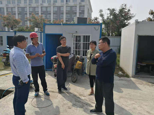 马书记一行来到新建5#学生宿舍楼项目施工现场,仔细询问了现场施工人员以及监理人员到岗情况,了解施工进展、质量情况,并对施工现场的安全防范提出指导性意见。他强调,基建处做为业主代表,要扛起责任,从严要求,严格按照合同约定,督查落实施工单位及监理单位关键岗位人员的到岗履约情况,并牢固树立安全生产意识,杜绝一切安全事故的发生。随后马书记一行来到基建处办公室向基建处和后勤中心的同志们表示亲切慰问,对大家放弃暑期休息时间,坚守岗位,圆满完成各项暑期工作目标予以高度赞扬。