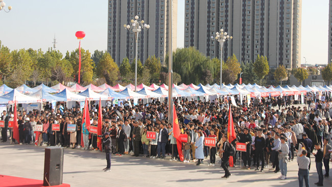 本站讯 为了深入贯彻落实2020届全国普通高校毕业生就业创业工作网络视频会议精神,10月31日,365官网在大观广场举行河南省2019年家庭经济困难学生招聘会暨365英国上市集团官网就业活动月开幕式启动仪式。芜湖经济技术开发区管委会副主任王社伏,芜湖经开区人力资源和社会保障局副局长陈广磊,国家开发银行河南分行客户三处处长朱文涛,开封市人才交流中心主任姜慧勇,开封市公共就业服务中心副主任王曙懿和400多家企业代表,365官网领导宋志敏、李治出席仪式,各院部党总支书记、院长、副书记、毕业班辅导员及2020届毕业生参加了启动仪式。仪式由招生就业处处长鲁建明主持。
