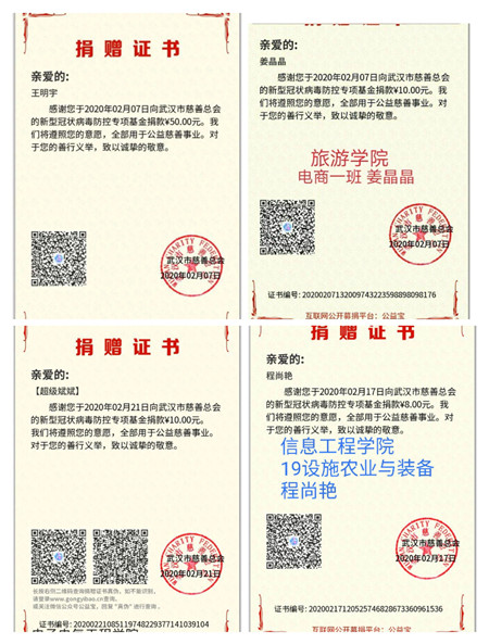 一方有难,八方支援。在上级团组织的号召下,学生会干部们积极行动,充分发挥模范带头作用,参与捐款捐物、奉献爱心、志愿服务等活动。据不完全统计,校学生会干部累计捐款1.2万余元,有10位学生会干部参加志愿服务活动。面对复杂严峻的疫情形势,学生会主席团认真筹划各部门组织开展线上“再远也要传递爱”、“隔离不隔爱”等主题宣传活动,有效增强了成员的爱心凝聚力,并转载、发布一些疫情期间的感人事迹,让同学们阅读并留下心声,受到了广大学生的好评。