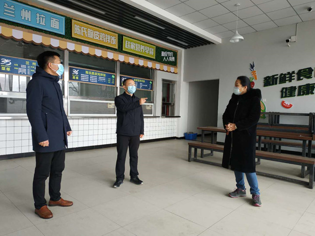 本站讯 2月28日上午,副校长李治对开学前学生餐厅疫情防控准备工作进行了检查和指导。后勤管理服务中心主任徐纪珂、副主任张红霞、饮食科科长梁战军参加了检查。