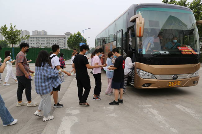 本站讯  7月9日,是河南省普通高等学校专升本统一考试的日子。为帮助专升本考生安全、快捷、准时抵达考场,以良好的状态投入到考试中,365官网为专升本考生安排了送考专车,将学生直接送至市内9个考点。