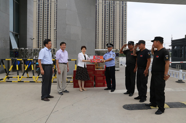 活动中,成主席一行依次来到学校南大门门岗、基建处、后勤管理服务中心、宣传部、教务处等部门对高温酷暑中辛勤工作、默默奉献的教职工表示感谢,并为他们送去慰问品,叮嘱他们在工作中一定要注意防暑降温,随时把安全放在首位,合理安排作业时间,劳逸结合,确保安全的情况下各项工作