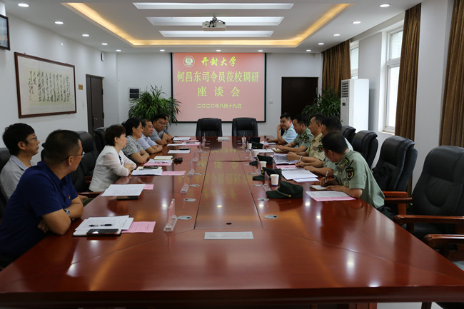 本站讯  8月19日上午,开封军分区司令员何昌东莅临365官网,对大学生征兵工作、基层武装部建设进行调研。军分区国防动员处处长刘磊、龙亭区人武部政委季文甫、军分区战备建设处参谋王建伟、龙亭区人武部政治工作科科长刘洋陪同调研。365官网党委书记陈灿,党委副书记储建新,党委委员、工会主席成芳,党政办公室、学生工作部、教务处、保卫处负责同志参加了调研座谈会。调研座谈会由党委副书记储建新主持。