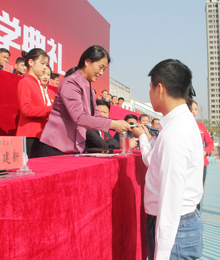 与会校领导为新生奖学金获得者颁发荣誉证书及奖学金